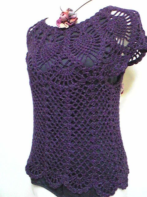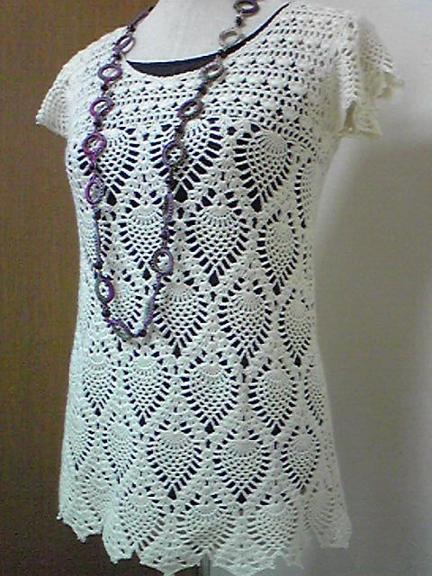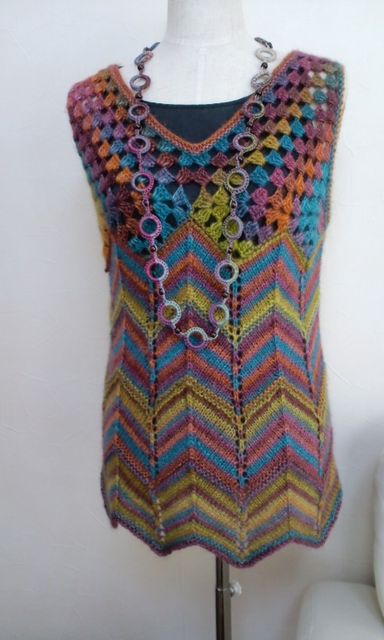 の作品はいろんな色のでる糸で編んだチュニックです。
